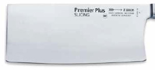 This special chef’s knife is the most important knife in Asian cuisine. It is suitable for cutting vegetables, herbs, lettuce, fruit and poultry. The chopper, with its wide spine, is eminently suitable for chopping up large pieces of meat – particularly poultry – and for finely dicing vegetables. The thinner Chinese chef’s knife, the slicer, is suitable for finely cutting herbs and vegetables, as well as meat and fish.