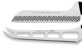 The specially etched blade means that even soft cheese doesn’t stick to the blade. The angled handle means that there is a lot of space between the hand guiding the knife and the cutting board.