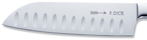 A utility knife is a special knife which can be used for almost anything in the kitchen. The indents on the blade create air cushions which minimize foodstuff adhering to the knife. Can be used for fine cutting.